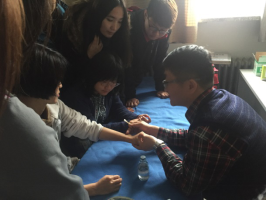 享受完姚老师的推拿,接下来就是体验看似有点“恐怖”的针灸了。同学们分别围坐在魏玉龙和马良宵老师的身边,认真听着老师的讲解。从了解针灸所用的针具开始,到亲身体验,同学们对针灸的神奇赞叹不已。从有一点儿怕,到欣然接受,看得出每一位同学都怀着极大的兴趣投入对针灸的学习中。