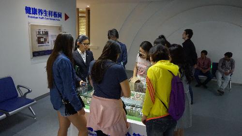 本次活动从参观体验天士力大健康展览体验馆开始。奖学金生们了解了天士力集团的创建历程、发展理念与规模,并且在自助健康检测区、中医健康养生体验区亲身体验了大健康服务,加深了对大健康理念的理解。随后,奖学金生们参观了天士力交流展示中心、天士力星光大道及药用植物园等景观,纷纷用相机记录下天士力集团为现代中医药国际化做出的贡献,并对中医药现代化的发展啧啧赞叹。