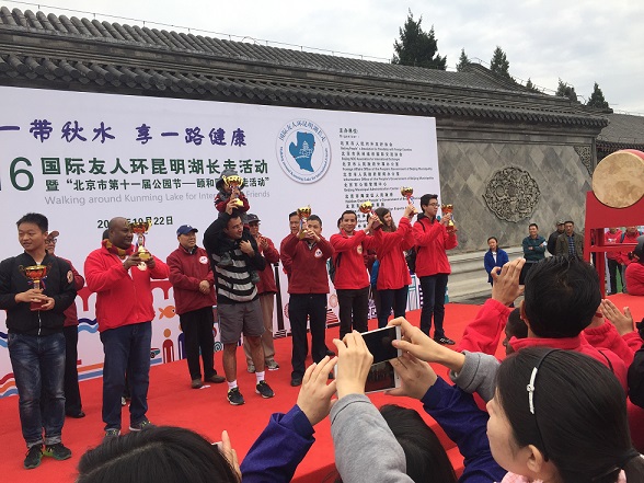 我校留学生参加2016国际友人环昆明湖长走活动