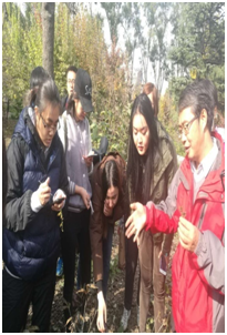 学生在中科院药植所实地认药、采药