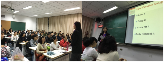 第三讲是《我在加拿大做中医》,主讲人是我院2017级博士生黄薇。黄薇在入学前是加拿大高级中医师、专科骨神经治疗师,她以自己治疗病人的故事举例,生动阐述了在加拿大执医过程中的文化差异问题,还分享了如何获得在加拿大的中医执业资格,中医在加拿大发展现状,以及对在加拿大工作生活的建议。最后,同学们围绕加拿大中医执照的执业范围、北中医学历在加拿大工作的认可等问题进行了提问。