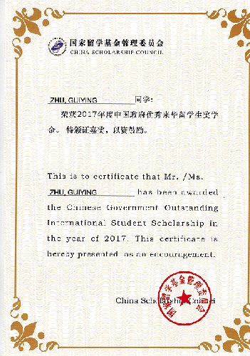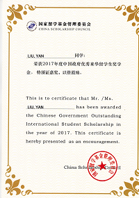 国际学院刘岩等3名学生获得2017年度中国政府优秀来华留学生奖学金