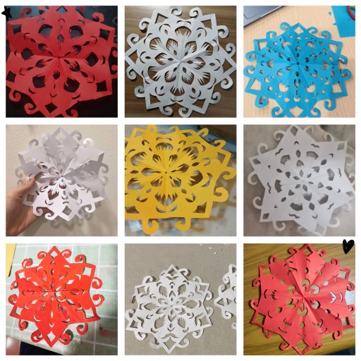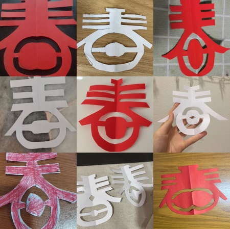 在中国传统文化知识介绍之后,由简影手工社的赵一玮同学教留学生剪“春”和“福”两个艺术字。她从线稿的设计,到纸张剪裁的操作,耐心地讲解了剪纸的一般工序,分享剪纸的小技巧,并提醒剪裁过程中的易错之处。最后,由简影手工社的罗世杰同学教留学生剪传统窗花。他介绍了多边对称的折法,以及精细部分使用美工刀的一些雕刻技巧。参与活动的同学们认真学习剪纸,全程积极提问互动,分享展示个人的剪纸作品,体会到了剪纸的快乐,更深入体会了中国传统文化的魅力。